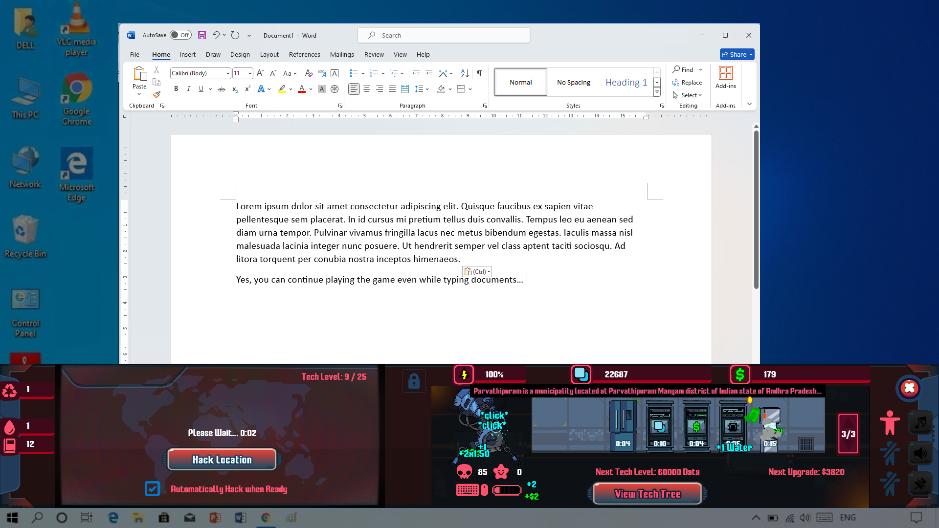 You can leave the game running on the desktop while performing other tasks, and your Spiderbots, Test Subjects and Facility will continue generating resources for you! This allows you to conveniently perform other tasks while your Rogue A.I. takes over. World domination has never been easier!